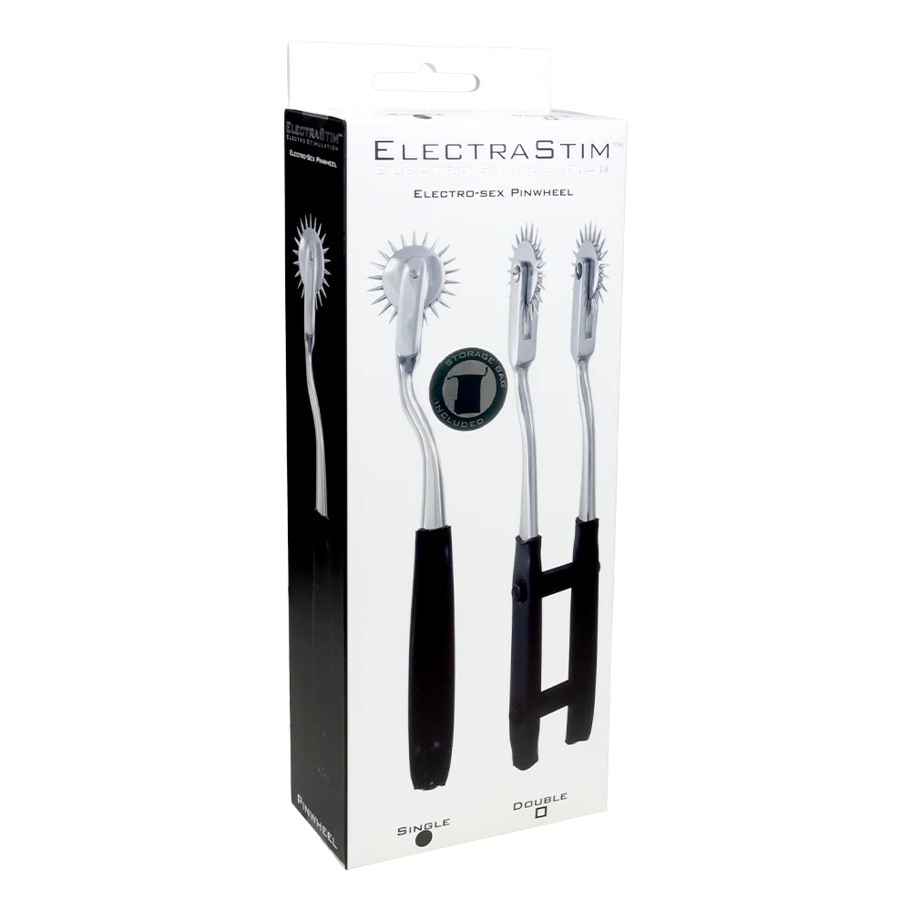The 2-wheel ElectraStim double electro pinwheel serves up twice as many teasing sensations with every stroke to improve your erotic response during sensory play. An incredible tie-and-tease tool of seduction, you can enjoy its erotic charms with or without an electrostimulation unit. Although this bedroom bondage accessory looks scary, it’s designed to be used gently to awaken desire during foreplay.