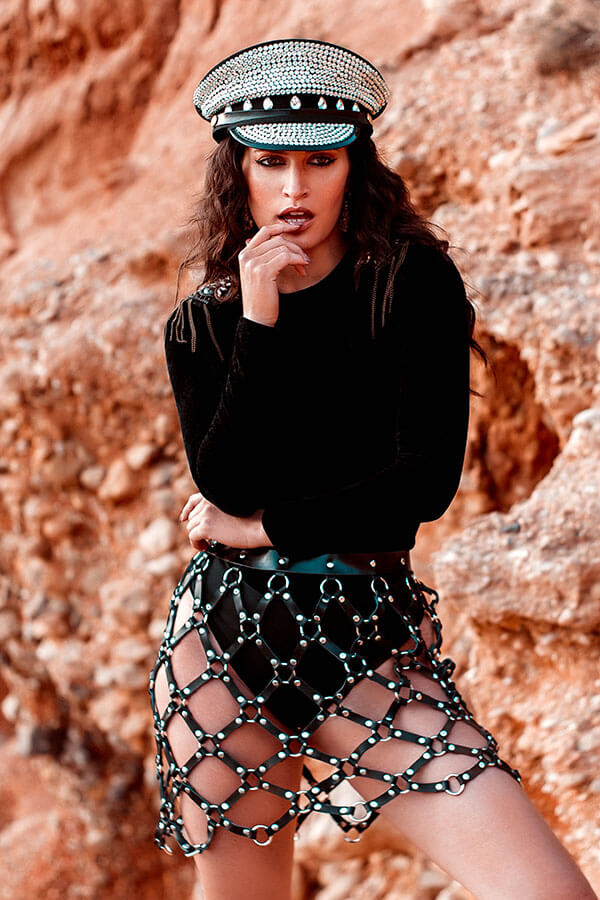 The bondage skirt beautifully frames your buttocks. The interplay of crossed straps gives you the ultimate kinky feeling when you wear the skirt. The adjustable belt at the waist ensures an ideal fit.